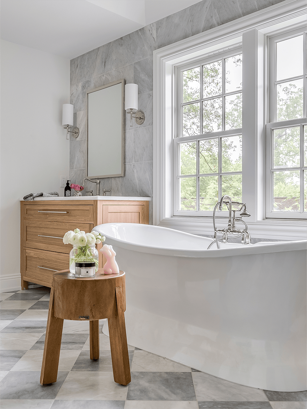 New interior finishes enhance the classic charm of the original structure, blending timeless character with fresh, updated design. Architecture by Dubinett Architects. Interior Design by Arielle Mizrahi Design.