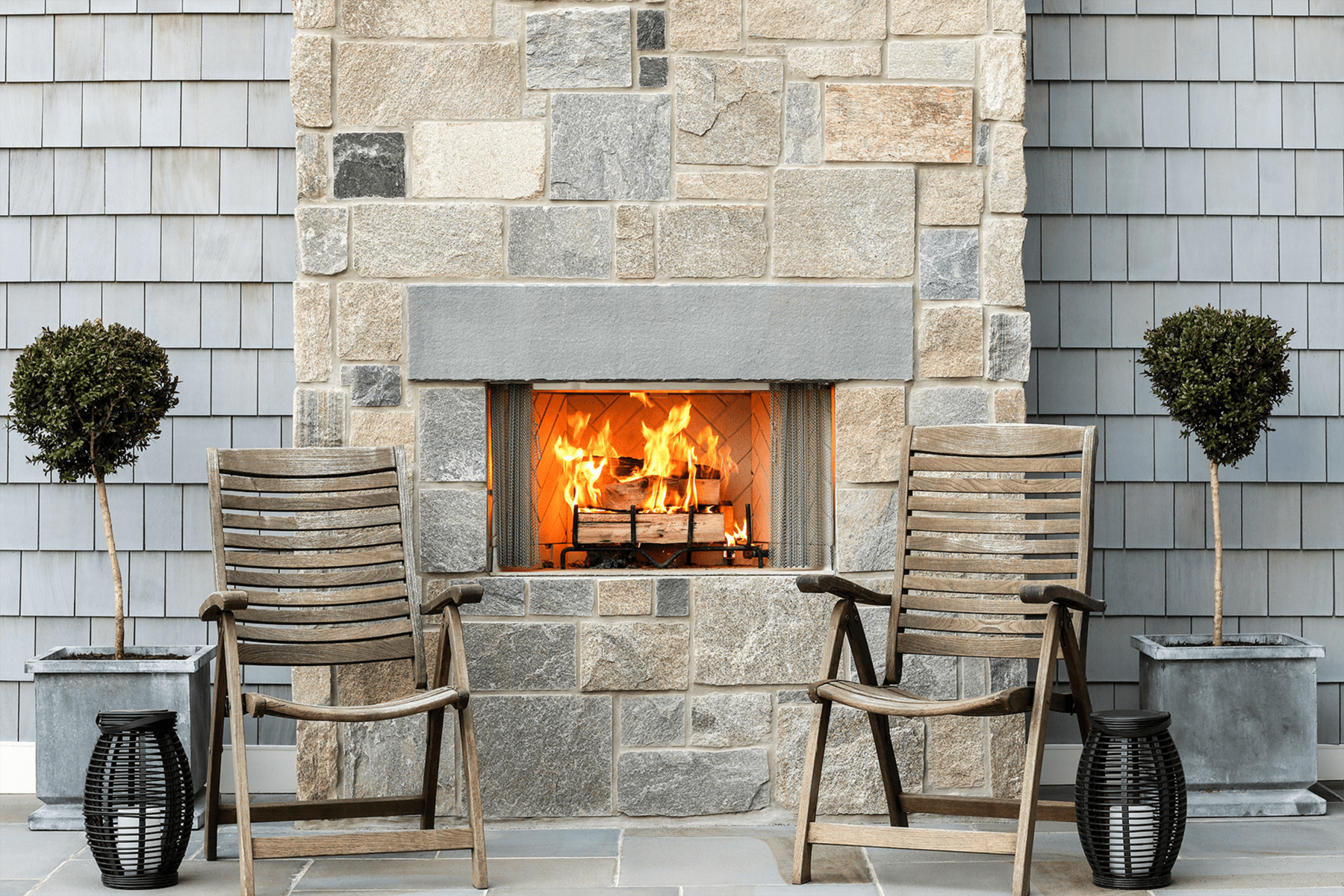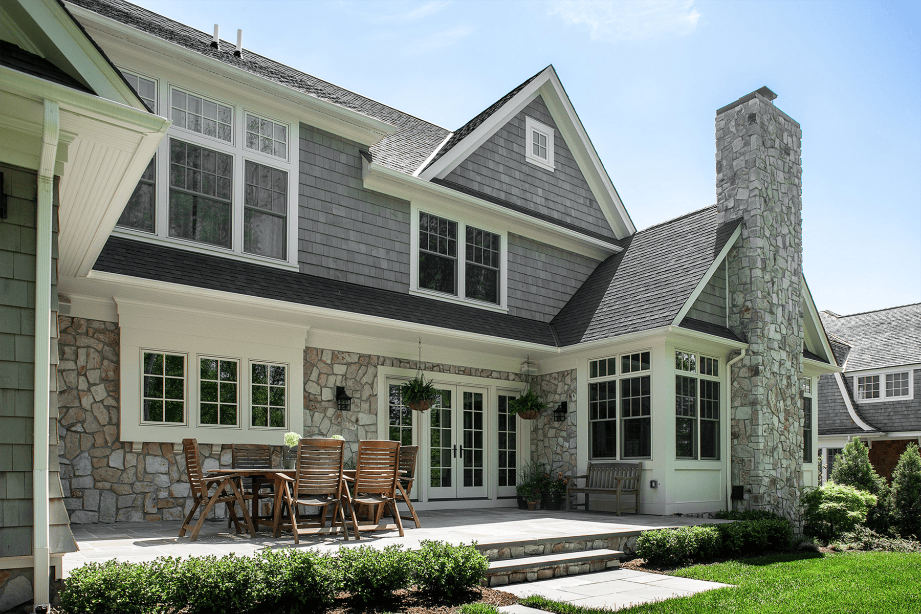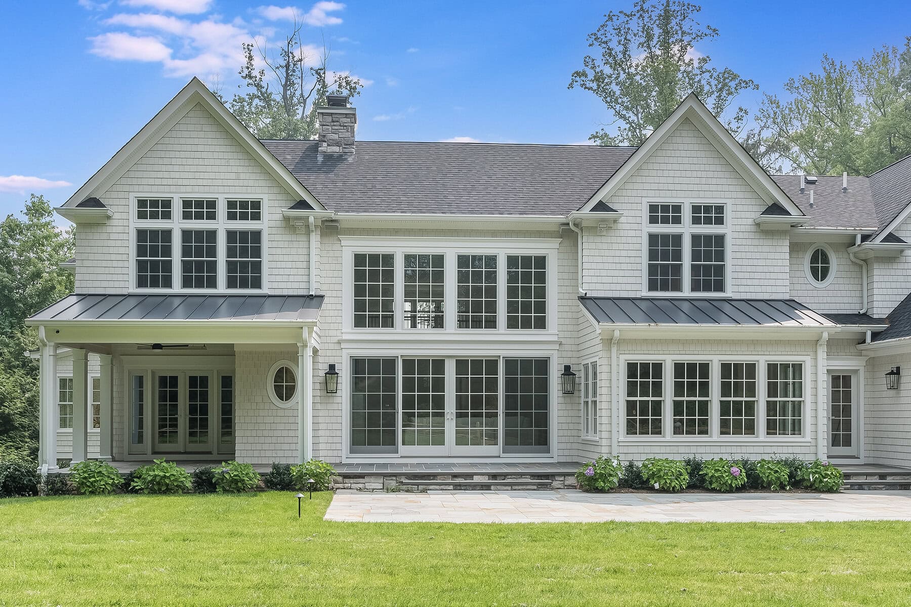 Another Hamptons-inspired Shingle Style home, this 7,000-square-foot residence features a charming front porch and a rear outdoor fireplace.